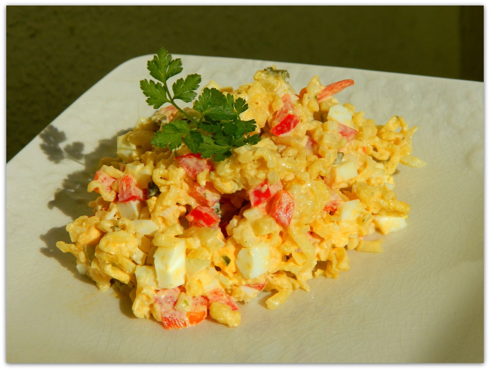 Sałatka z zupek chińskich oraz parówki po angielsku wypróbowane przez Kasię z bloga Czarrna od kuchni