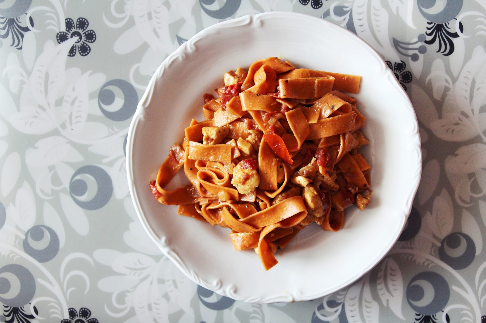 Anett W. (to nie ja;)) przygotowała Tagliatelle z kurczakiem i suszonymi pomidorami (z użyciem tagliatelle paprykowego)