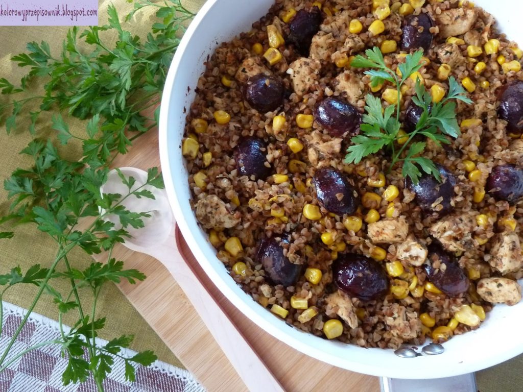 Potrawka z kurczaka z kaszą gryczaną i węgierkami