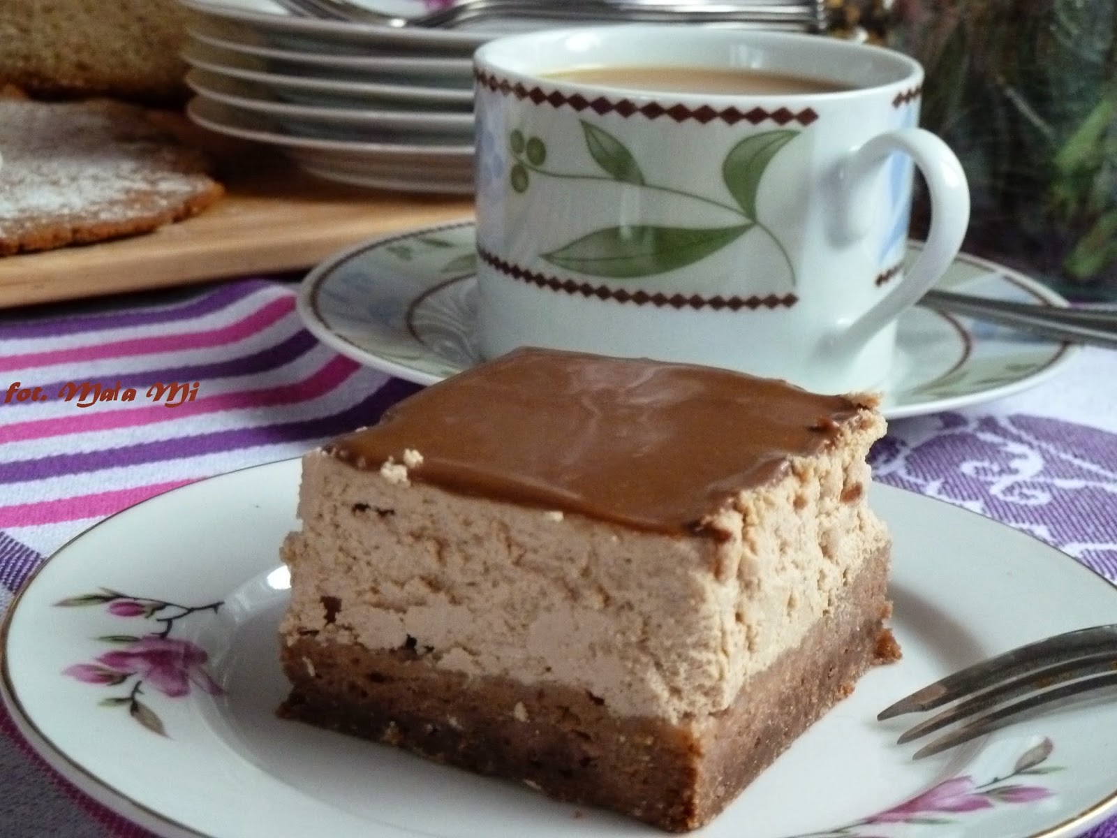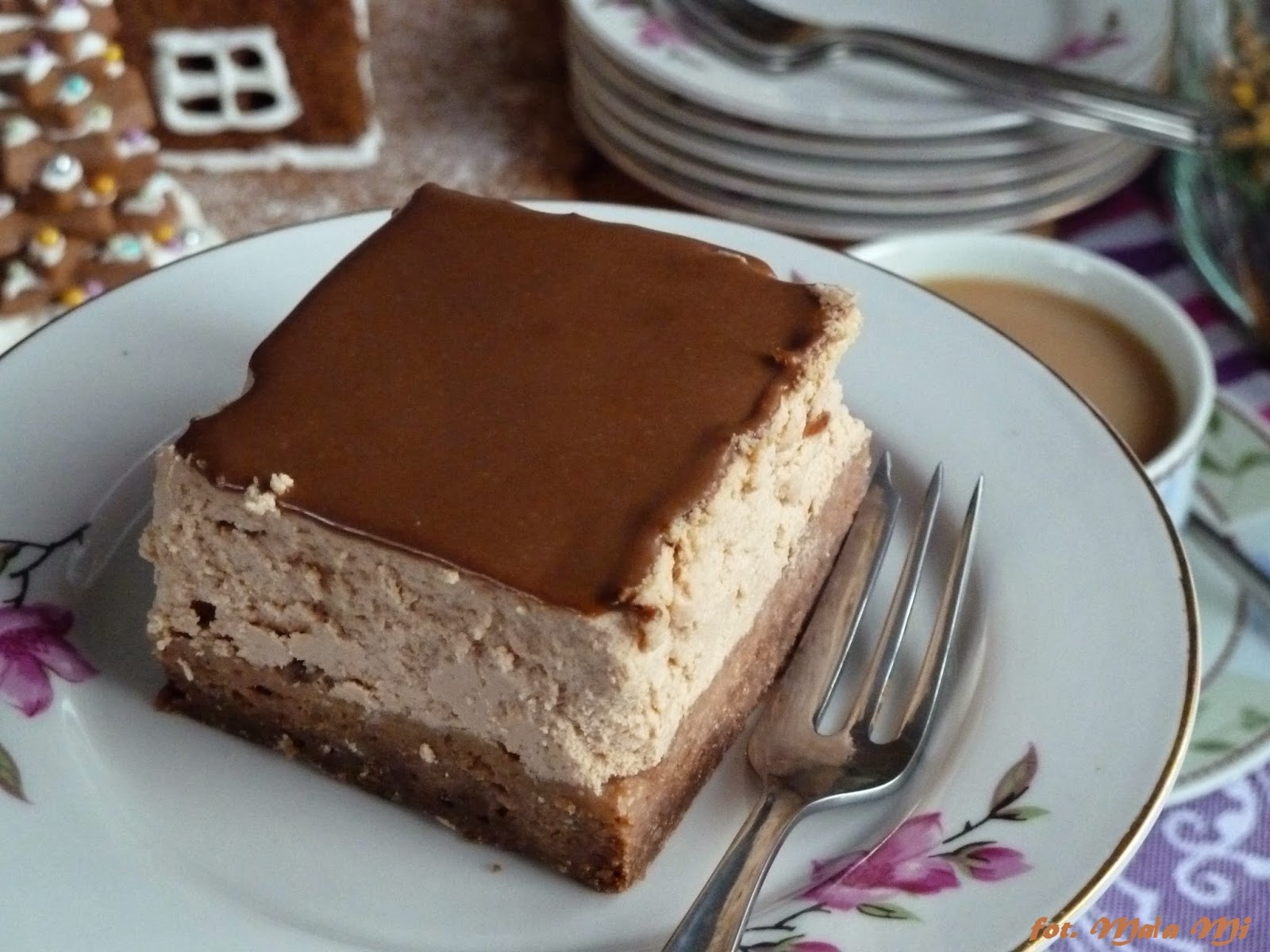 Na pomysł tego sernika wpadłam kupując czekoladę truflową. Pomyślałam, że skoro na Święta ma być sernik, to może by tak tym razem spróbować nowego. Pierwszy raz piekłam sernik „z głowy” (możecie wierzyć lub nie, ale naprawdę nie korzystałam z żadnego przepisu:)), a wyszedł przepyszny i równy jak stół! Po raz pierwszy wyszedł mi aż tak równy! I jestem z siebie dumna podwójnie – po pierwsze ze stworzenia przepisu (nawet jeśli już gdzieś jest identyczny, to ten jest po prostu MÓJ;)), a po drugie właśnie za jego równość i nie popękanie 🙂 Na Święta powtarzam!:) a na koniec przepisu pokazuję jak idealny wyszedł – zdjęcie już ostudzonego tuż przed wyjęciem 😉